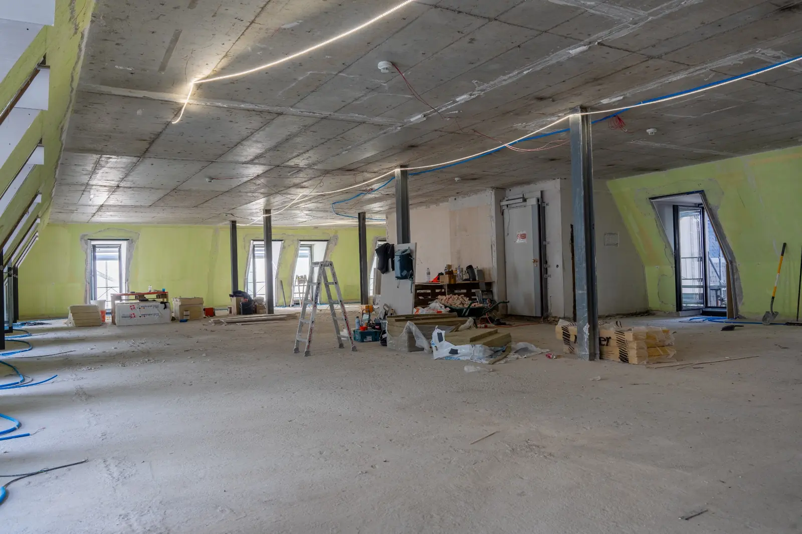 L’intervention comprend la coordination des corps de métier, les travaux techniques, les finitions intérieures ainsi que l’intégration de plafonds actifs afin de garantir des espaces modernes, fonctionnels et conformes aux exigences du projet.