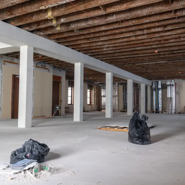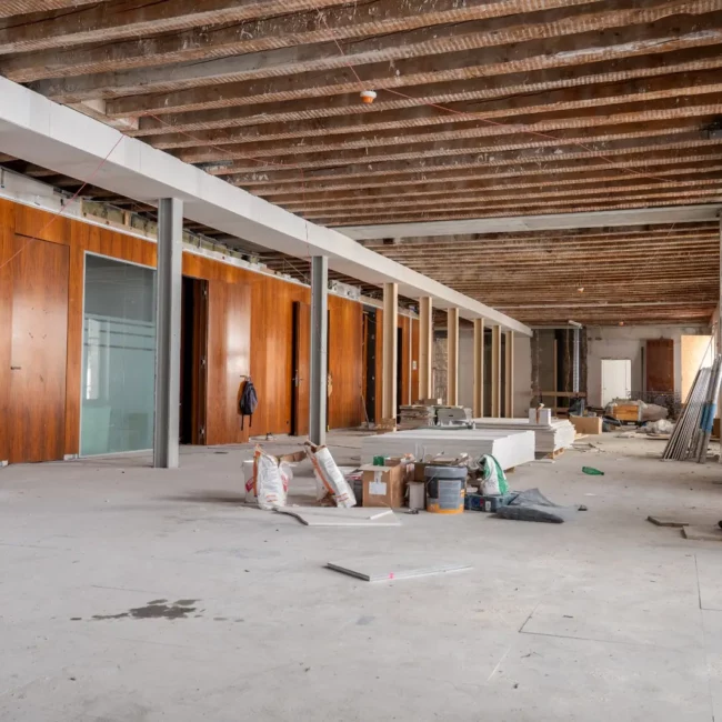 Dans le cadre de l’assainissement d’un immeuble en centre-ville, nous réalisons l’aménagement intérieur de plusieurs surfaces de bureaux livrées.